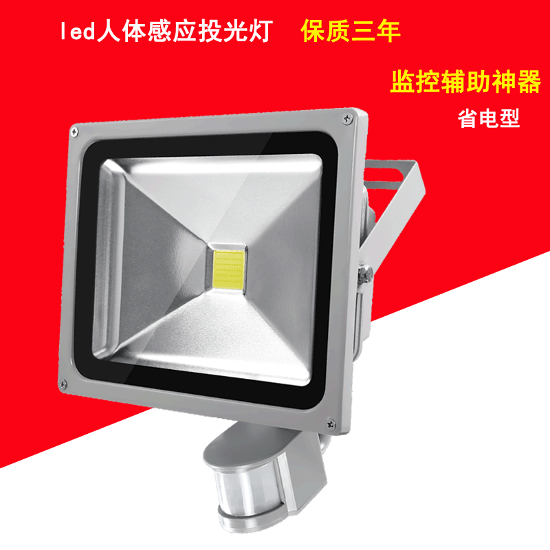 led人体感应投光灯100w车库灯户外光控泛光灯楼道灯红外感应射灯