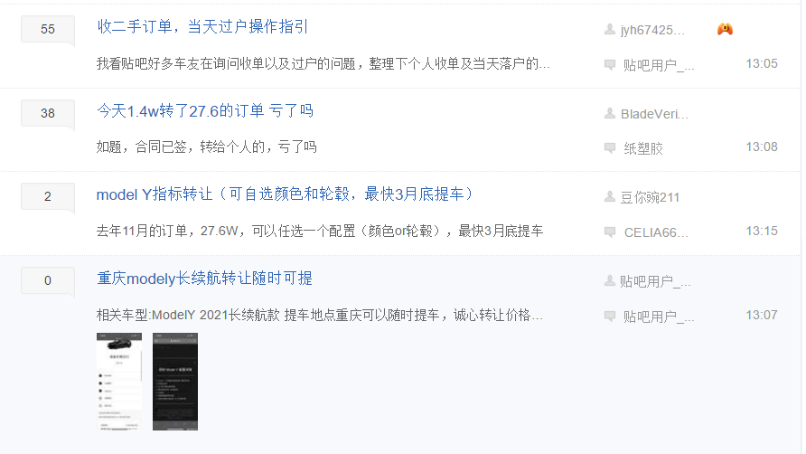 此次涨价后不少人开始在各平台上寻求低价转单。即通过加价从别人手中购买还未交付的订单,由于转单价格低于车企的涨价幅度,而且可以在一定程度上缩短提车时间,也成为一些人曲线购车的方案。